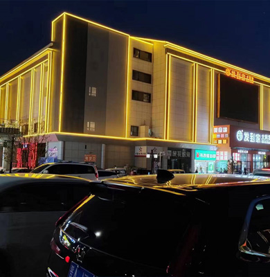 线条灯:常用于勾勒建筑结构,增强立体感。
